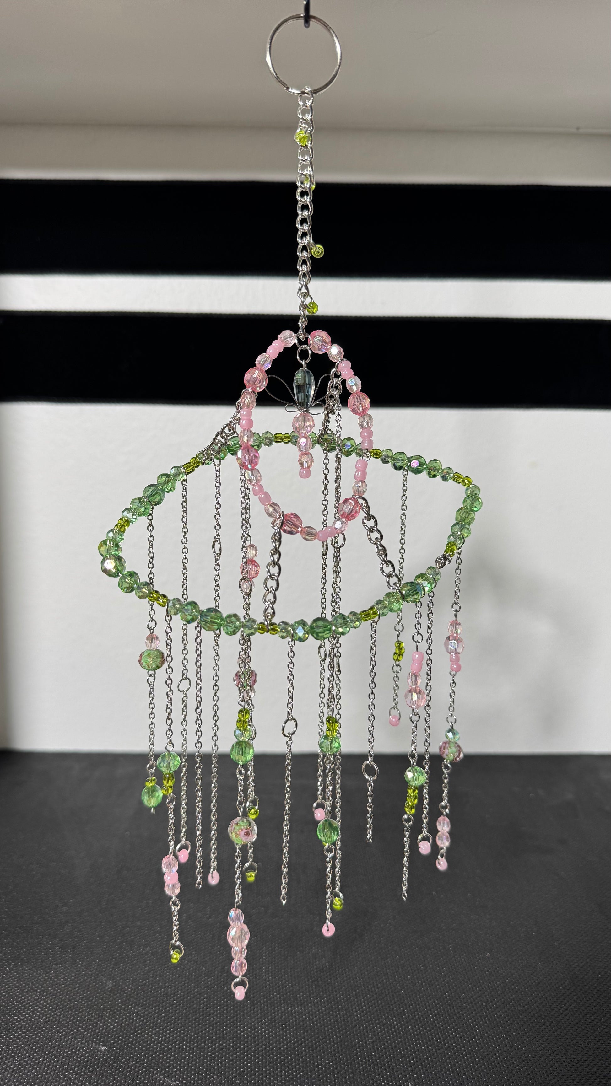 Enhance your home decor with Eye Catcher, a unique Suncatcher in pink and green. Its eye-shaped design adds an artistic touch and brings in natural light. Expertly crafted, it's a perfect statement piece for any room, adding a touch of elegance with its vibrant colors.