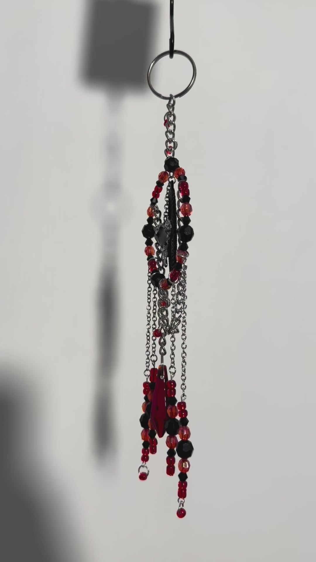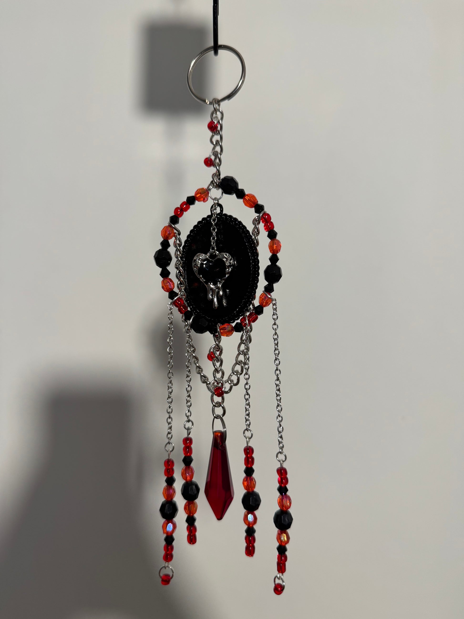 The Mini Florence. - it's an alternative suncatcher. With a dazzling array of red, black, and a silver dripping heart charm, this piece is one-of-a-kind. With its unique design, it's sure to catch the eye of anyone who sees it. Bring a touch of elegance and style to your look with the Mini Florence.