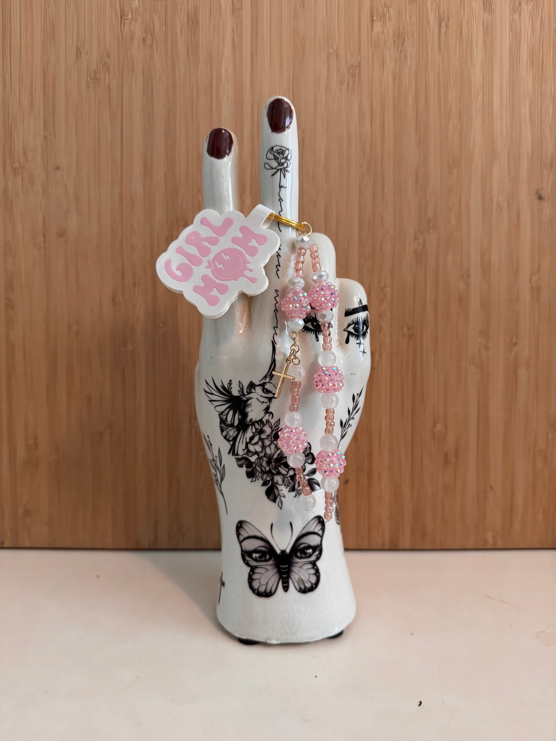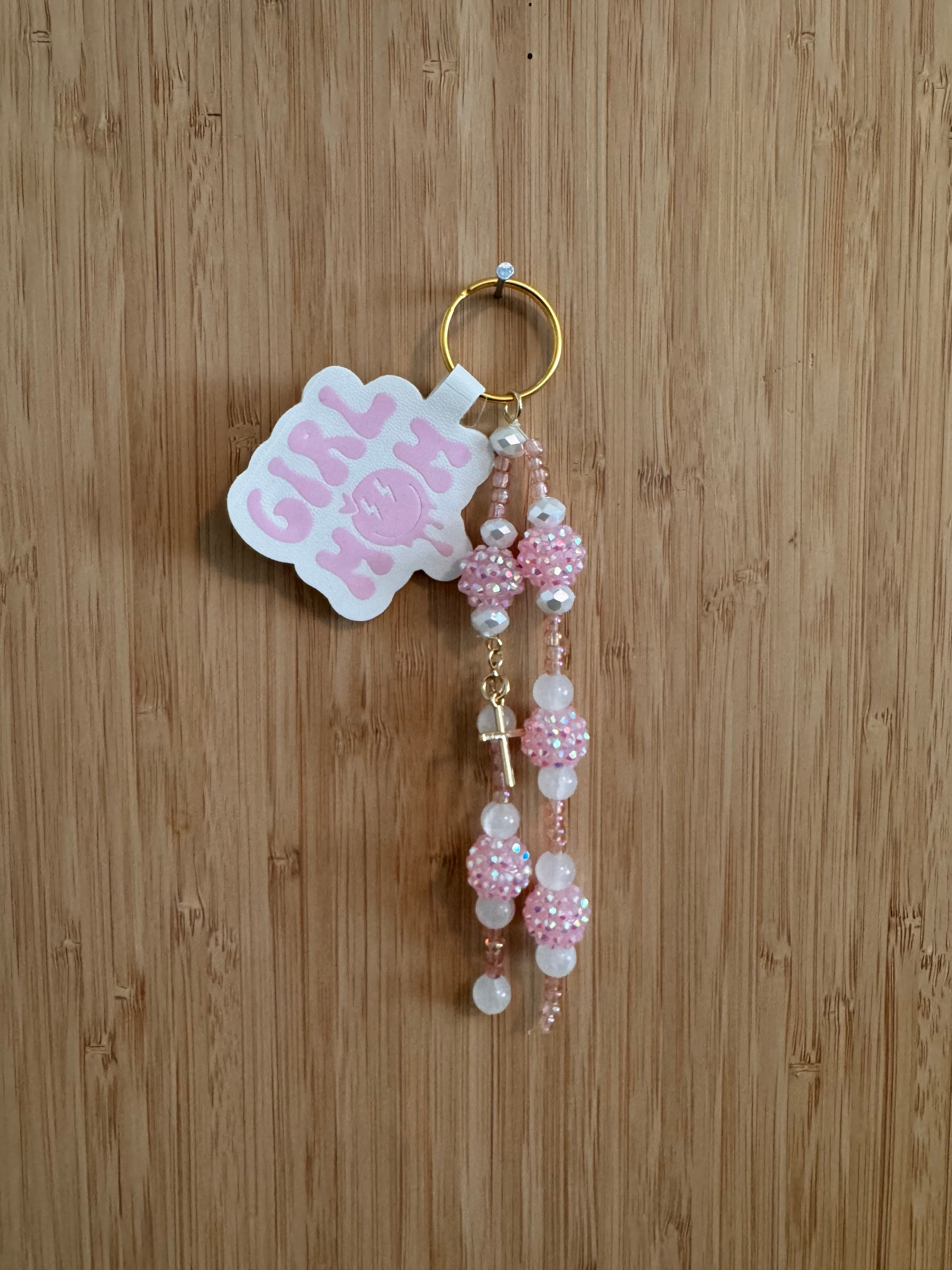 This Pink Girl Mom bag chain features a stunning gold cross, adding a touch of elegance to your handbag. The sturdy and durable design ensures secure attachment, perfect for on-the-go use. Make a statement and elevate your style with this chic accessory.